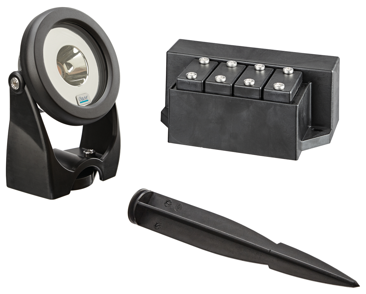- Compris : 1 ou 3 lampes avec 5 m de câble chacune, pilote de LED avec possibilité de raccorder 4 lampes ainsi que 1 ou 3 piquets