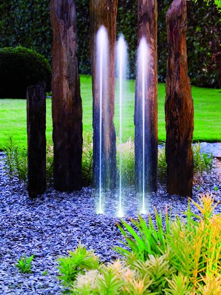 - Les différentes hauteurs des jets d’eau (de 30 à 140 cm) et l’intensité lumineuse varient en boucle dans le cadre de programmes bien définis.