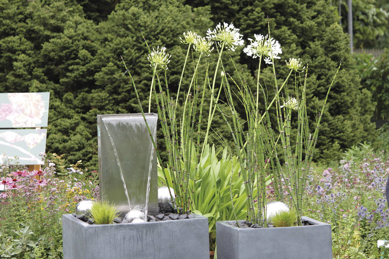 - Autre possibilité : l’installation en combinaison avec un réservoir d’eau et le couvercle correspondant. Visser simplement sur le couvercle du réservoir et décorer de gravier – terminé !