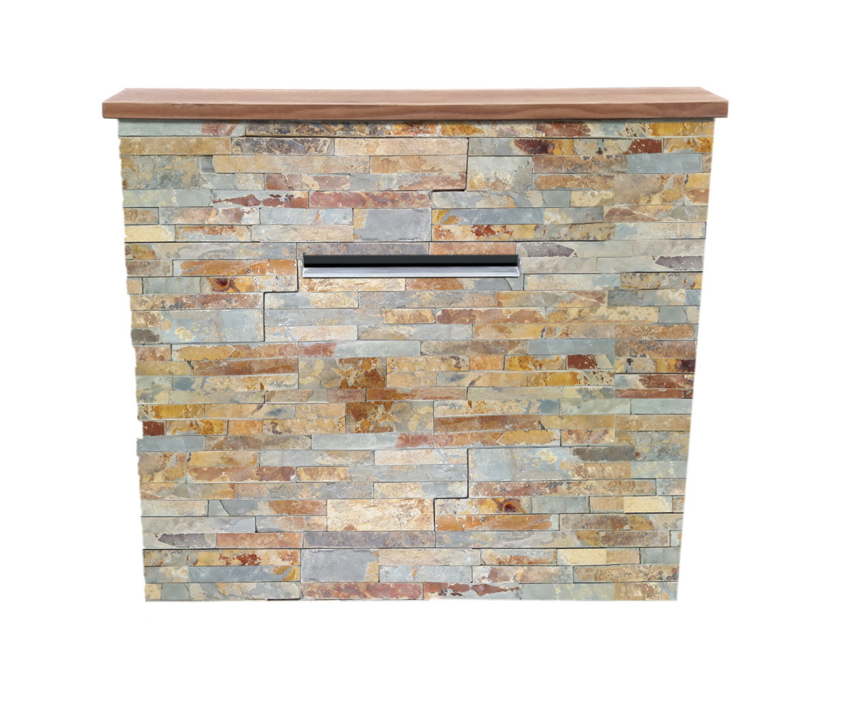 - Muret en parement pierre naturelle renforcé en polyester : L 0.80 m x l 0.25 m x haut 0.60 m