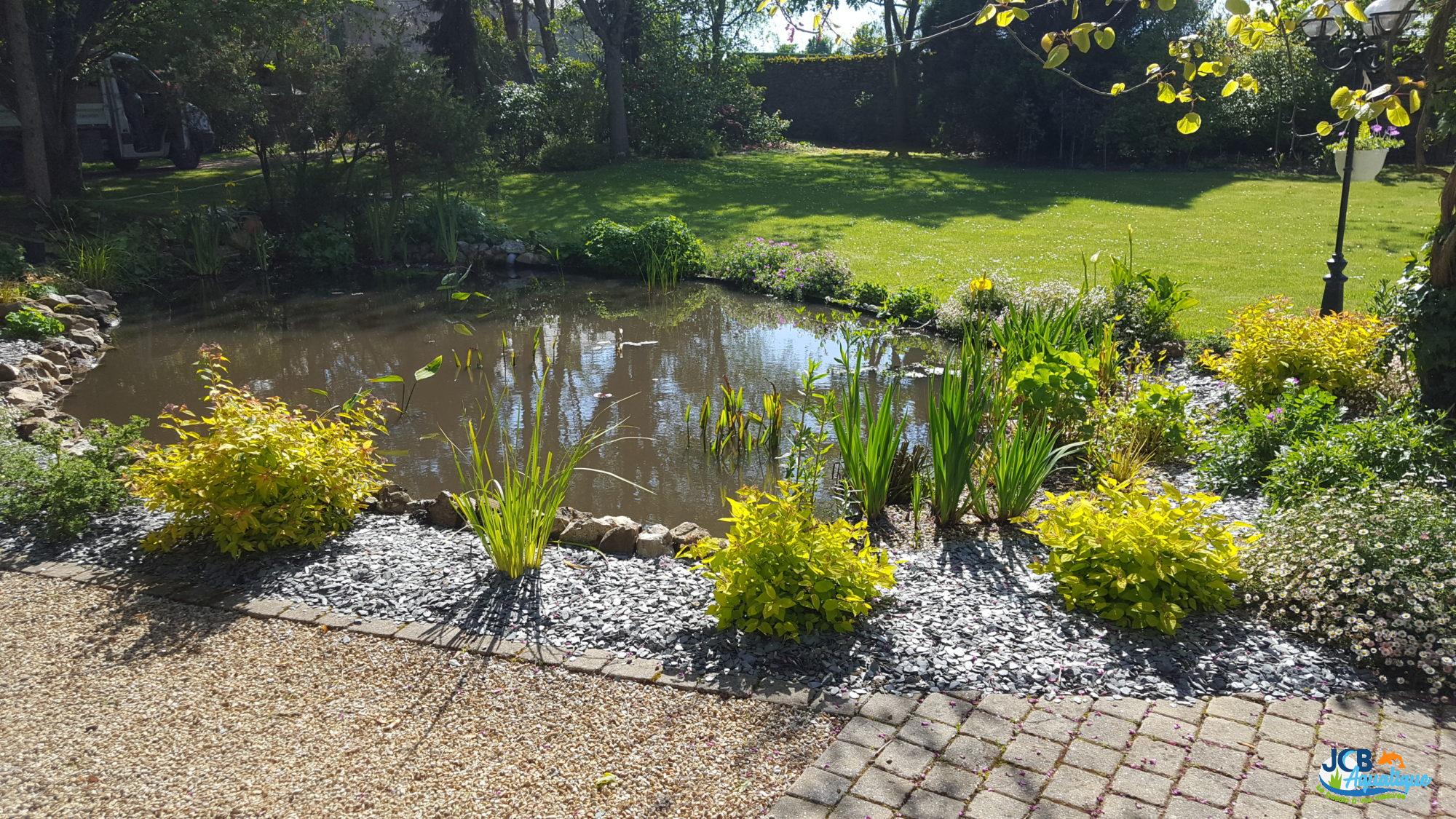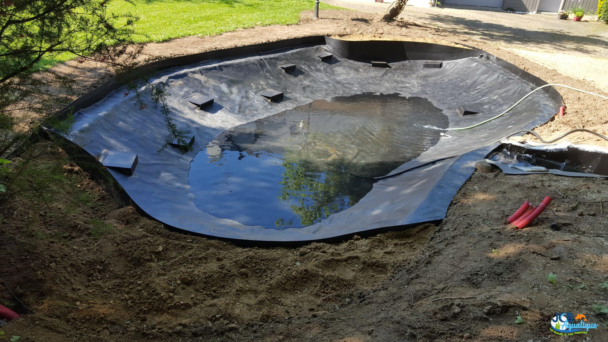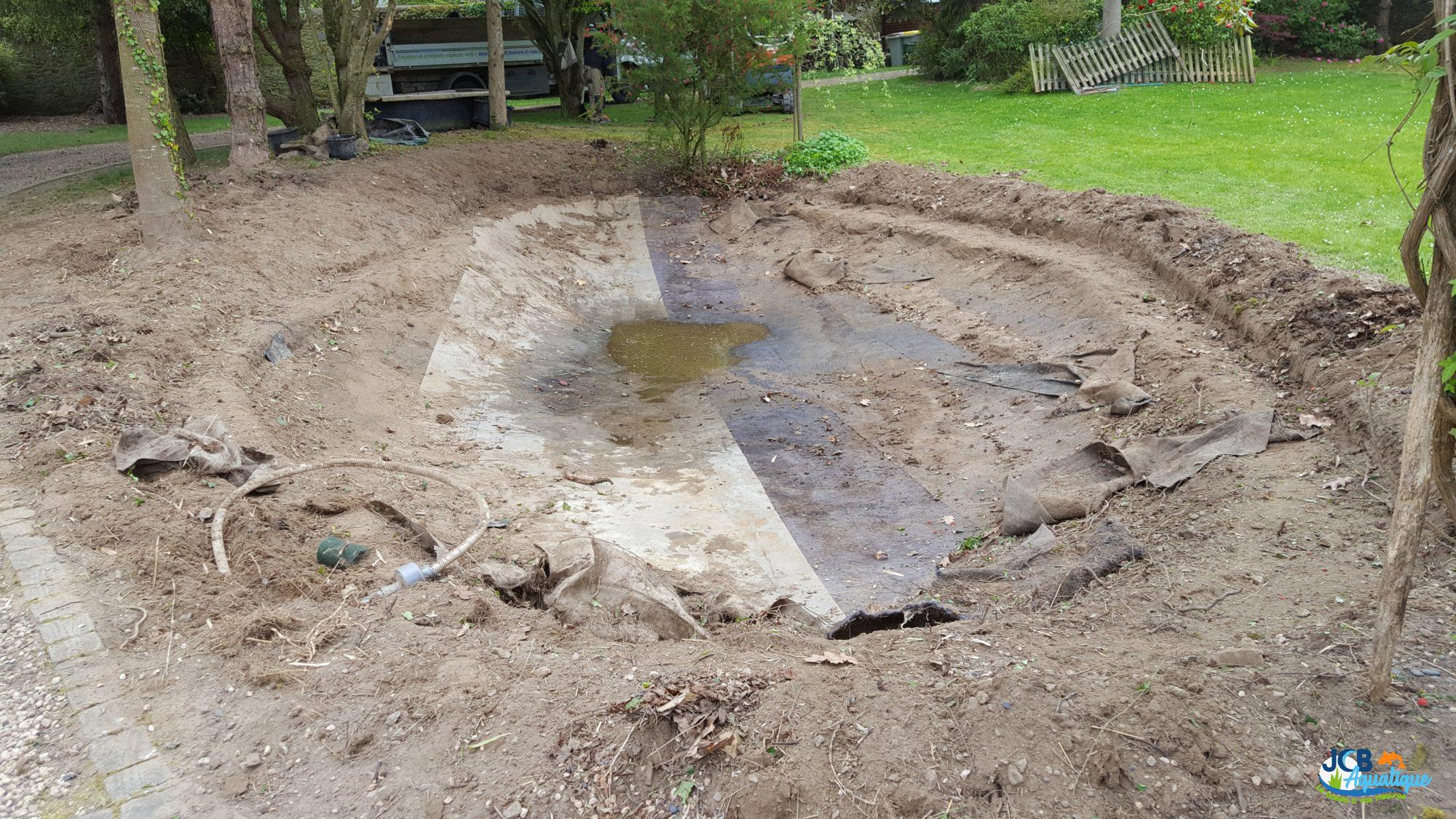 Réfection d’un bassin existant en bâche perforée et remplacée par un bassin polyester et petite cascade stratifiés sur place.