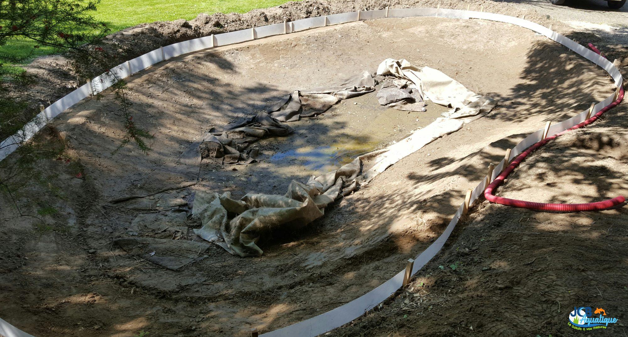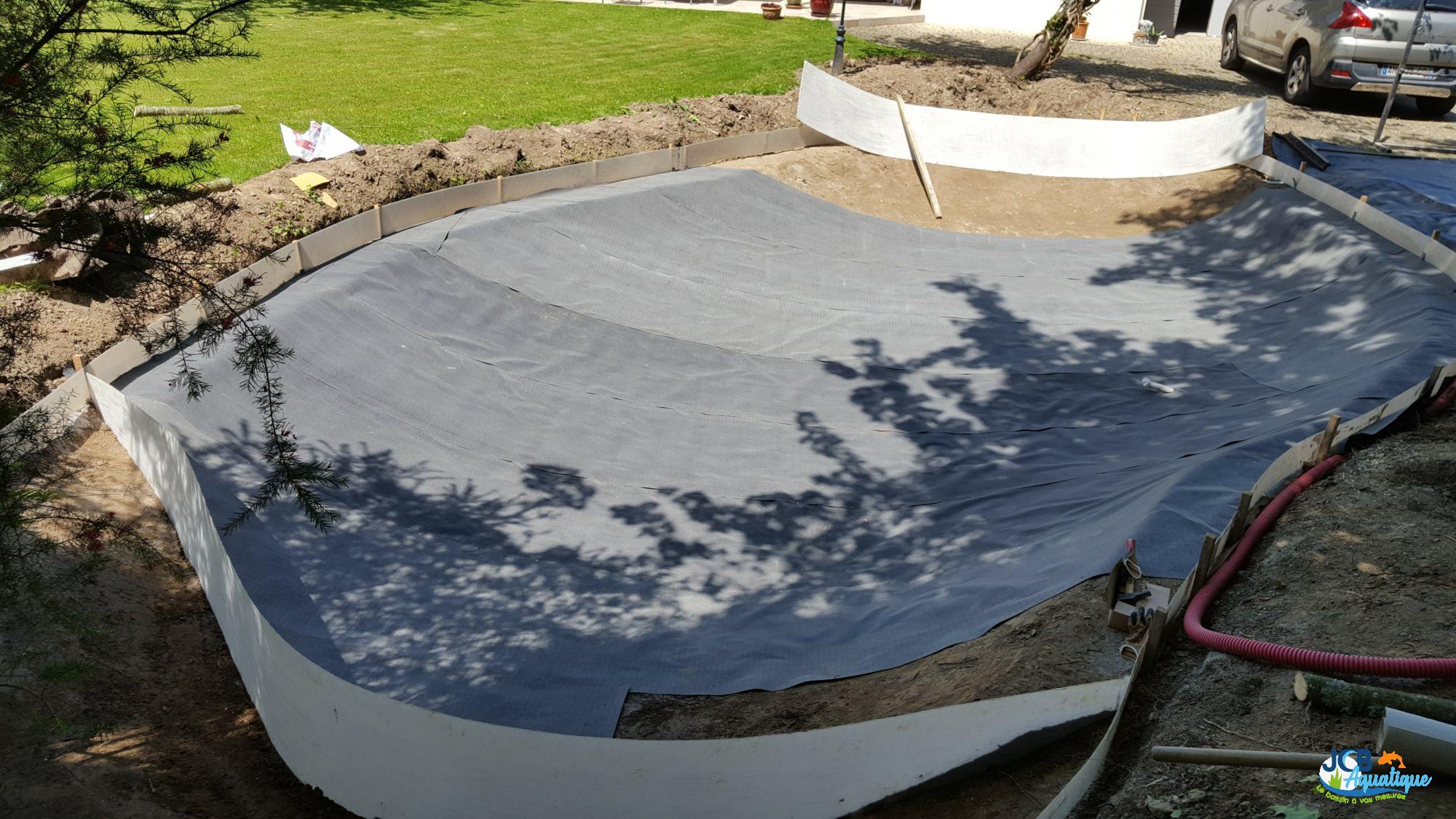 - Empreinte du bassin avant pose du papier goudron et stratification polyester