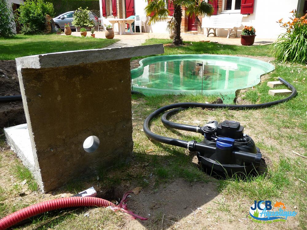 - Mise en place des accessoires pompes, filtration, éclairage.